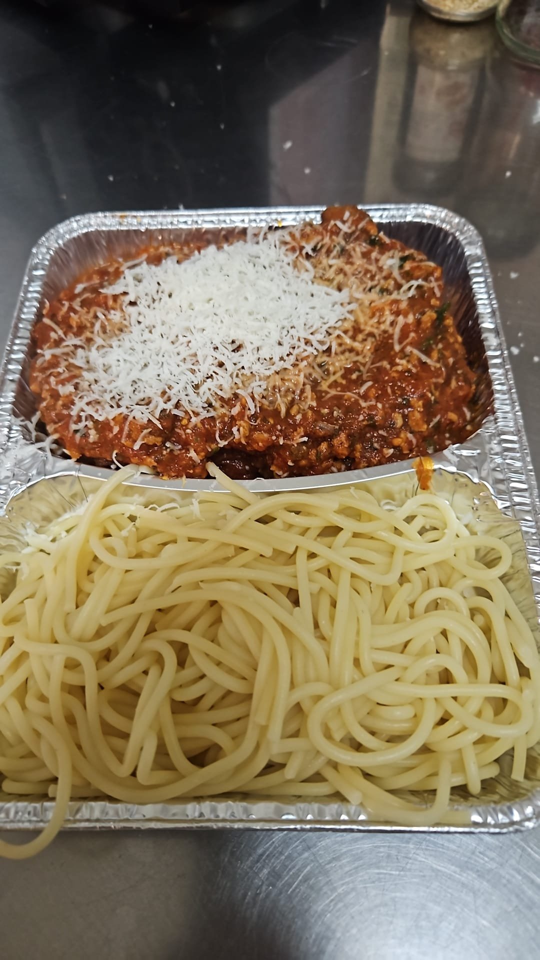mit Bolognese und Parmesankäse überbacken